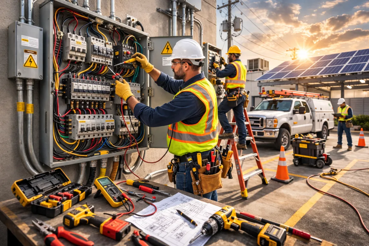 Our commercial services include complete electrical system installations for offices, retail spaces, warehouses, and new construction projects, along with commercial breaker panel and power distribution upgrades designed to handle higher electrical loads safely. We design and install efficient commercial lighting systems, provide fast and reliable electrical repairs and system upgrades to minimise downtime, and offer preventive electrical maintenance through regular inspections to improve safety and extend system lifespan. All work is performed in strict compliance with local and national electrical codes, ensuring reliable, safe, and fully compliant commercial electrical solutions.